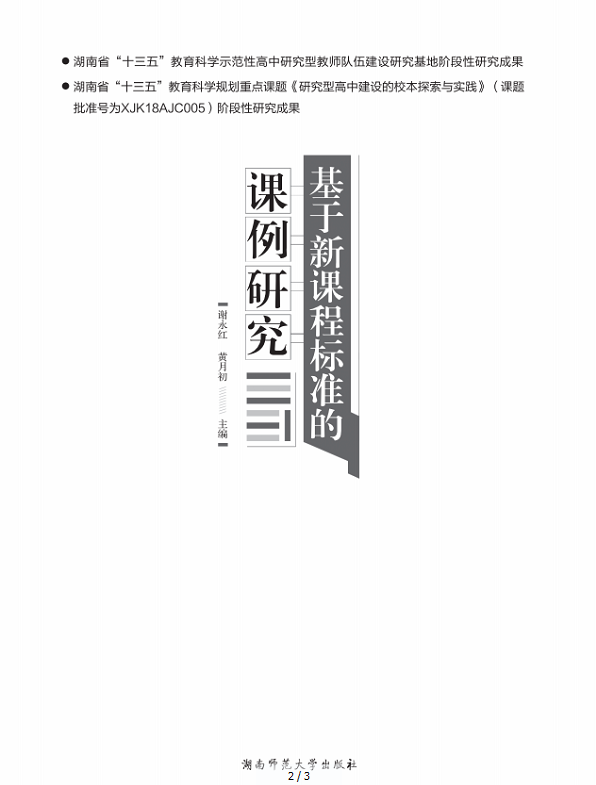 《基于新课程标准的课例研究》是湖南省“十三五”教育科学研究基地建设的又一阶段性研究成果,也是湖南省“十三五”教育科学规划重点课题《研究型高中建设的校本探索与实践》的重要阶段性研究成果。全书分四个部分,共八章,包括课例研究的基本理论、课例研究的校本实践、课例研究的学科探索、优秀课例及评介, 分别从宏观、中观、微观三层面对新课标、新教材进行理论探讨和行动研究,是我校高中课堂教学研究又一力作。