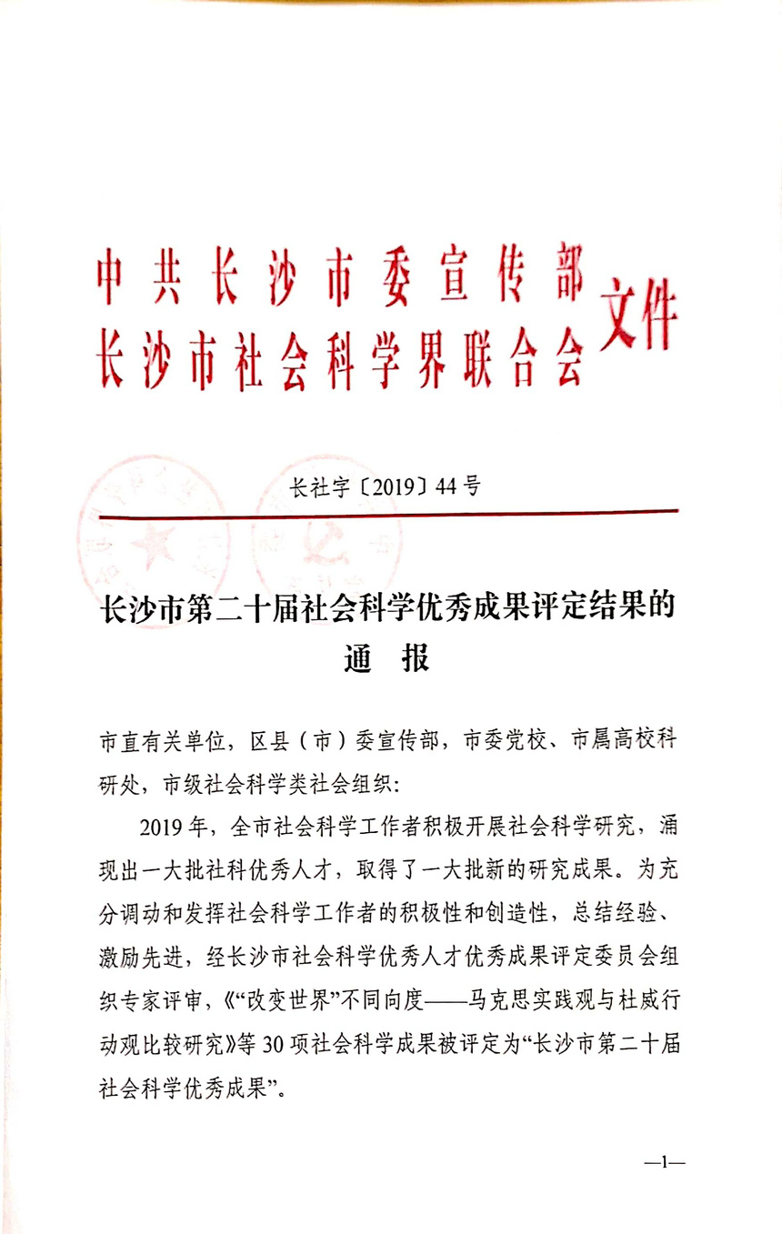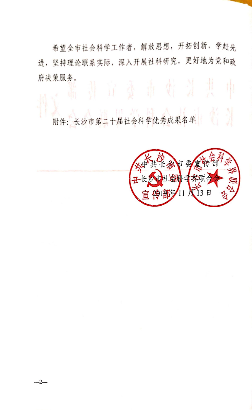 我校多名教师喜获长沙市第二十届社会科学优秀成果奖