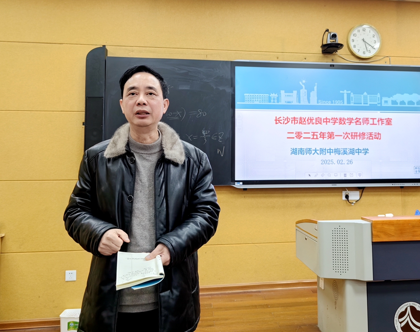 2月26日长沙市赵优良中学数学名师工作室2025年第一次研修活动在湖南师大附中梅溪湖中学举行,本次活动以“义务教育新课标教材教学研讨”为主题,旨在深入探讨新课标理念下的数学教学策略,助力教师专业成长。长沙市教科院教研员唐亮、湖南师大附中梅溪湖中学数学教师、安乡一中部分数学教师和长沙市赵优良中学数学名师工作室初中学段成员参加本次活动。研修活动由工作室名师杨庆芬老师主持。