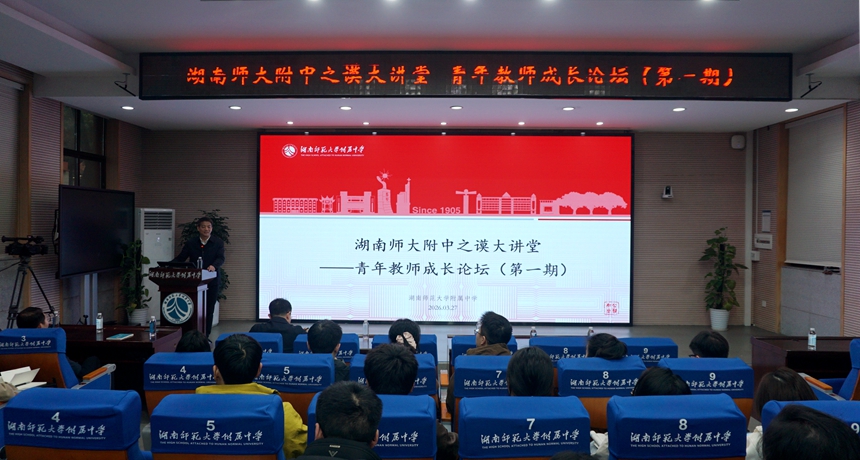 3月27日下午,湖南师大附中“之谟大讲堂”青年教师成长论坛第一期在桃子湖校区图书馆一楼报告厅开讲。本次活动由课程与教学处、科研与教师处联合组织,课程与教学处陈淼君主任主持活动,180余名青年教师参加,集团学校教师同步线上参会。