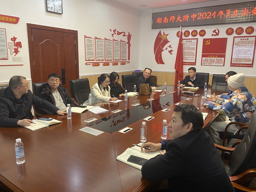 3月8日, 湖南师大附中提质研究室2023-2024学年度第一次会议在三会议室举行。提质研究室主任副校长苏建祥和主要成员出席。会议由党委委员黄宇鸿支持主持。