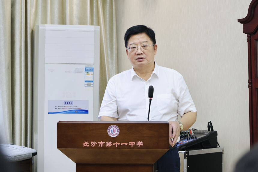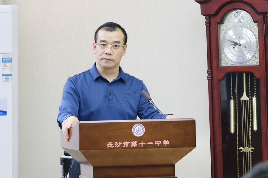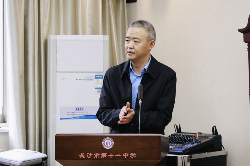 10月28日,我校基地宣讲团队赴长沙市第十一中学开展湖南省“十四五”教育科学研究基地合作单位授牌及交流活动,长沙市教育局副局长聂庭芳,湖南师范大学教育科学学院教授、博士生导师常思亮等领导和专家出席了活动,长沙市第十一中学、长沙市周南中学、长沙县第一中学、浏阳市第一中学、宁乡市第一高级中学、宁乡市第四高级中学、宁乡市第十三高级中学、衡东县第一中学等兄弟学校的领导和教师代表参加了此次活动。