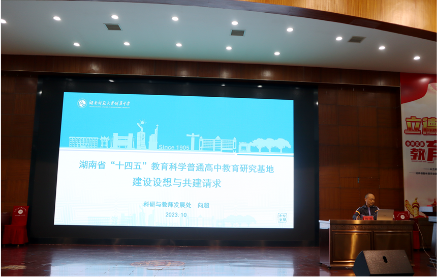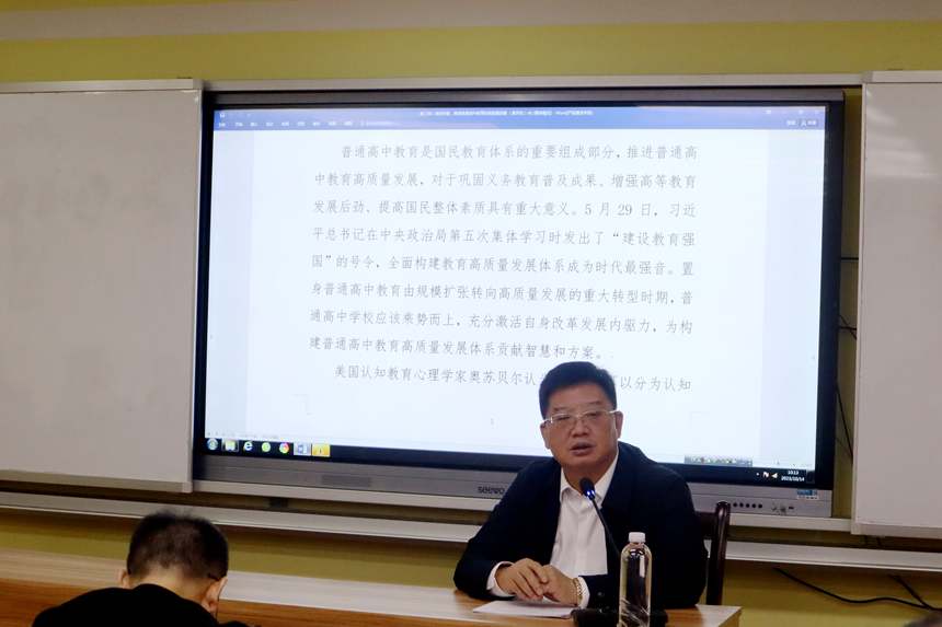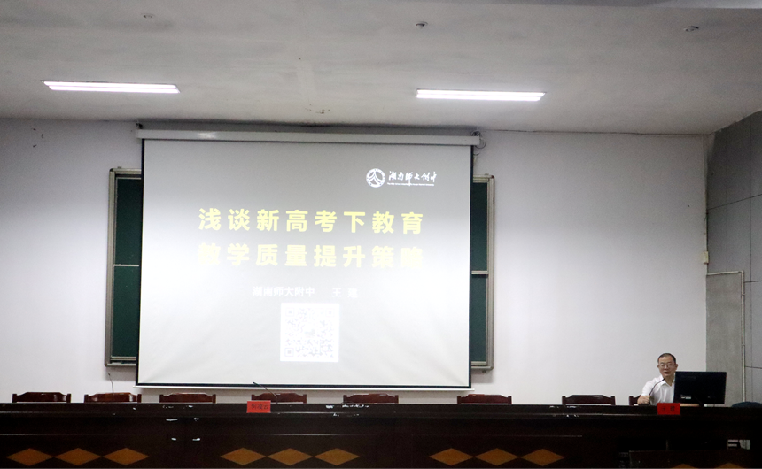 党委书记黄月初作《激活内驱,推进普通高中教育高质量发展》的专题讲座,从激活认知内驱力廓清内涵、激活自我提升内驱力找准抓手、激活附属内驱力借助推手三个方面介绍湖南师大附中推动普通高中教育高质量发展的智慧与方案。
