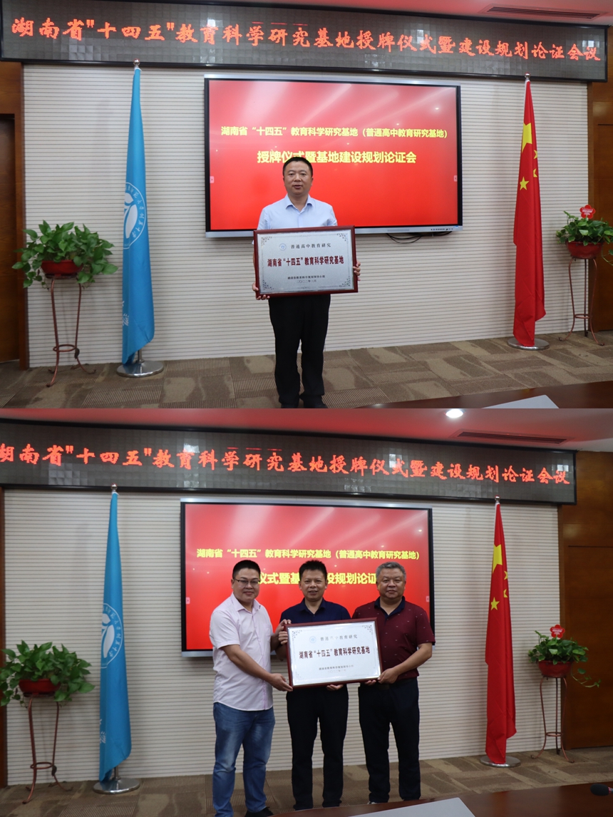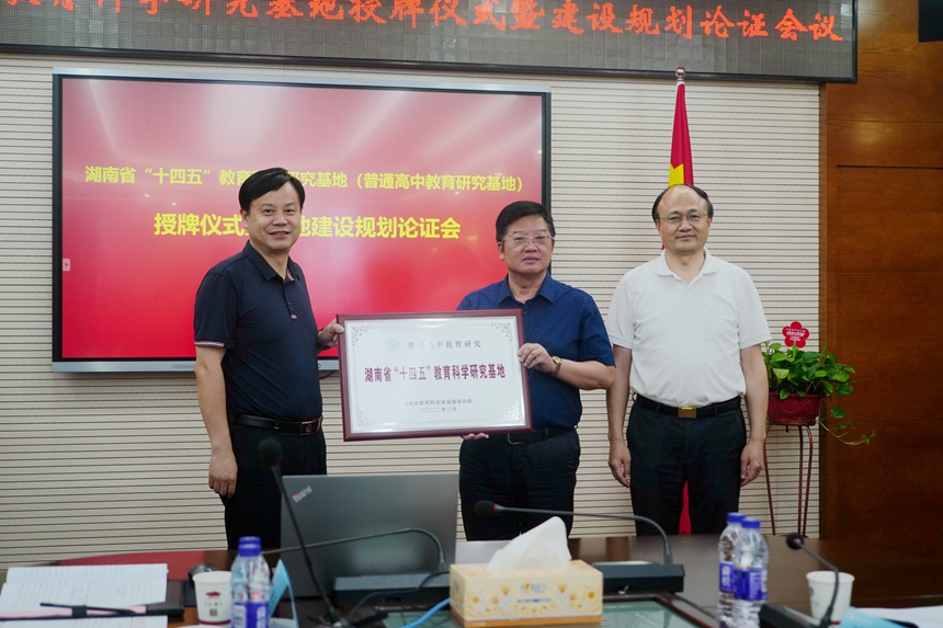 6月17日下午,学校在校史馆会议室隆重举行湖南省“十四五”教育科学研究基地(普通高中教育研究基地)授牌仪式暨基地建设规划论证活动。