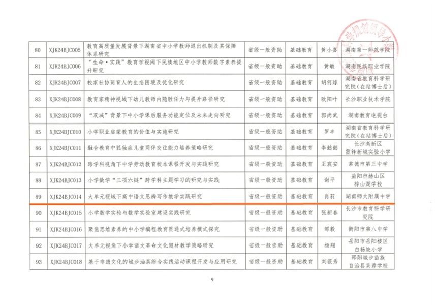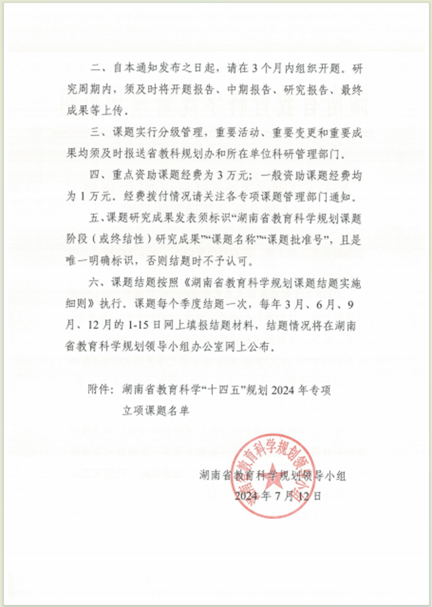 我校六项课题获准立项为湖南省教育科学“十四五”2024年度规划课题及专项课题