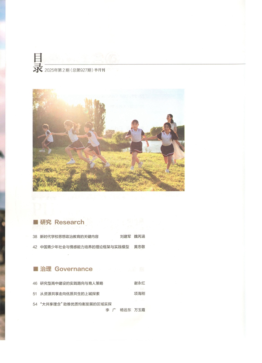 近日,《人民教育》(2025年第2期<总第927期>)以封面文章形式,刊发党委书记谢永红署名文章《研究型高中建设的实践路向与育人策略》,全面推介学校研究型高中建设历程与成果。