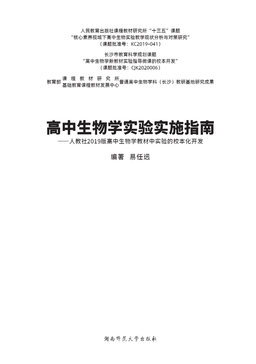 易任远老师专著《高中生物学实验实施指南》出版发行