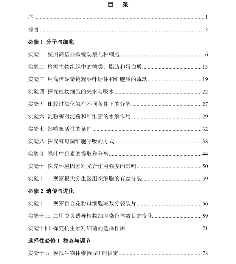 本书包含了人民教育出版社2019版教材中的29个实验,每个实验由实验目的、实验改进、材料用具、方法步骤、拓展延伸、原创视频、参考文献、实验报告八个部分组成,旨在为各校开设生物实验提供便利,提高实验效率,发展学生的核心素养,最终落实立德树人根本任务。