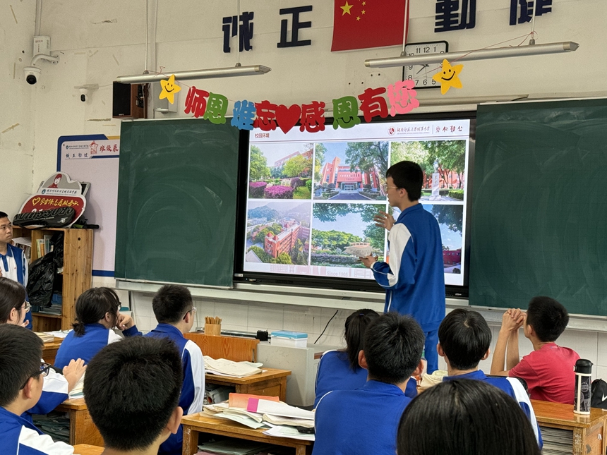 随后,大家根据安排有条不紊地进入各个班级进行宣讲。学校介绍、历史沿革、学科竞赛、校园特色无一不吸引着学弟学妹们。在中考之际,学长团的同学们向学弟学妹分享自己的中考经验,播放校友加油视频,祝愿所有学弟学妹都能收获好成绩,中考必胜。