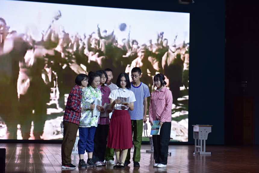 本次比赛,高一年级各班紧紧围绕“律动青春·强国有我”主题,构思了题材丰富的舞台剧,或歌颂人生百转千回中仍历久弥坚的信念,或回顾抗美援朝取得伟大胜利的光辉历史,或表达对祖国统一的期许,或扮演新青年带观众回到那个中国刚刚燃起希望之火的年代,或弘扬热心报国精神,继续建设中国特色社会主义。通过在舞台剧中穿插歌舞、朗诵等各种艺术元素,激励我们成民族复兴之大器,以人生之华,谱写青春之伟业。