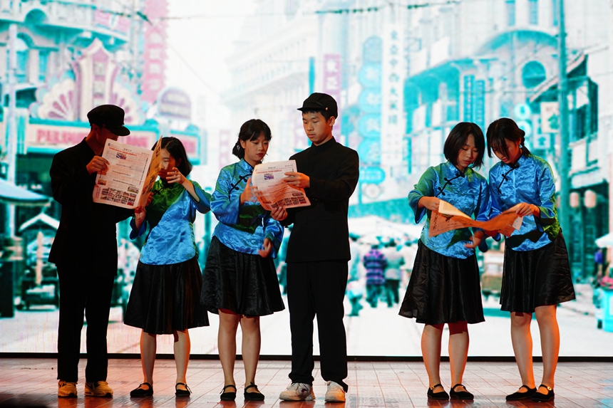 千年如梦,回荡先辈烟雨耕耘;未来有望,飞扬青年铿锵音律。此次舞台剧为大家带来了一场丰富的视觉盛宴,不仅是以艺术形式宣传爱国主义、传承历史文化的一次有益尝试,也是以文化凝聚人心、党史学习进校园的一次创新实践。