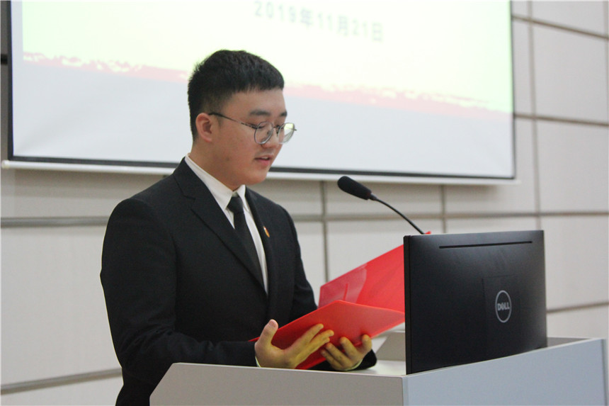 仪式在庄严嘹亮的国歌声中开始。团员代表1905班赵远彤同学发言,她讲述了入团两年来对共青团的认识,送上对新一期团校学员的美好期待。1821班刘翀同学代表新一期团校学员发言,表达了向团组织靠拢的决心,并郑重表态要认真学习、追求进步。