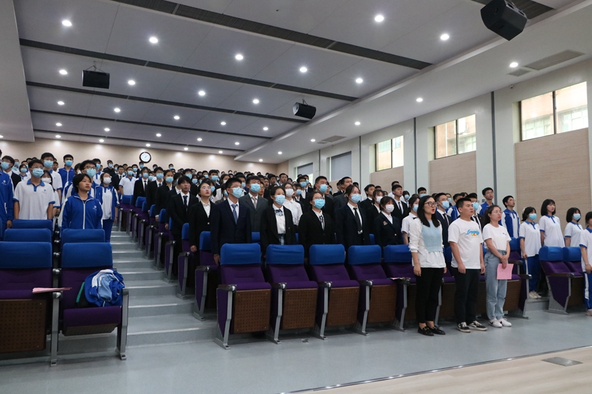 在庄严的国歌、校歌声中,大会拉开序幕。