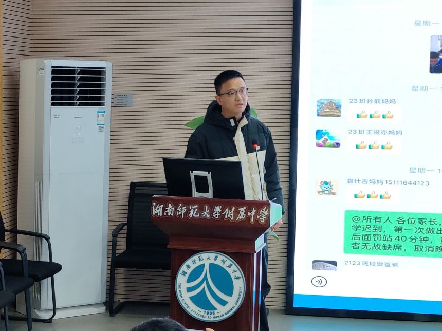 会议开始,张添,谢小超、蔡毅三位老师分别从班主任日常管理、学校德育管理的角度进行了交流和经验分享。张添老师分享了如何在工作过程中巧妙运用“班干部的自主管理”、“班级活动的仪式感”为班主任工作合理“减负”;谢小超老师用“请教”、“落实”、“放手”三个关键词总结了自己的班主任工作心得;蔡毅老师以“传承附中精神,精心德育管理”为题,向大家分享了自己德育管理工作的经验:重班级常规,以“六抓”的工作举措促学风;重温暖德育,用爱用情做温暖的德育人;重全员育人,众人划桨开大船,“一勤天下无难事,一份耕耘一份收获”。