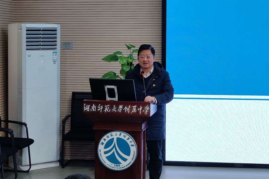 会议最后,校长黄月初总结讲话,他用“回归”作为讲话的开头词,并分享了自己的工作经历,他表示,德育工作是一个“爱”的体验,家庭、班级、社会、国家都因“爱”而完整,附中的师生是幸福的,因为生活在一个有“爱”的集体,并勉励大家以爱的名义赴一场温暖的教育之旅。