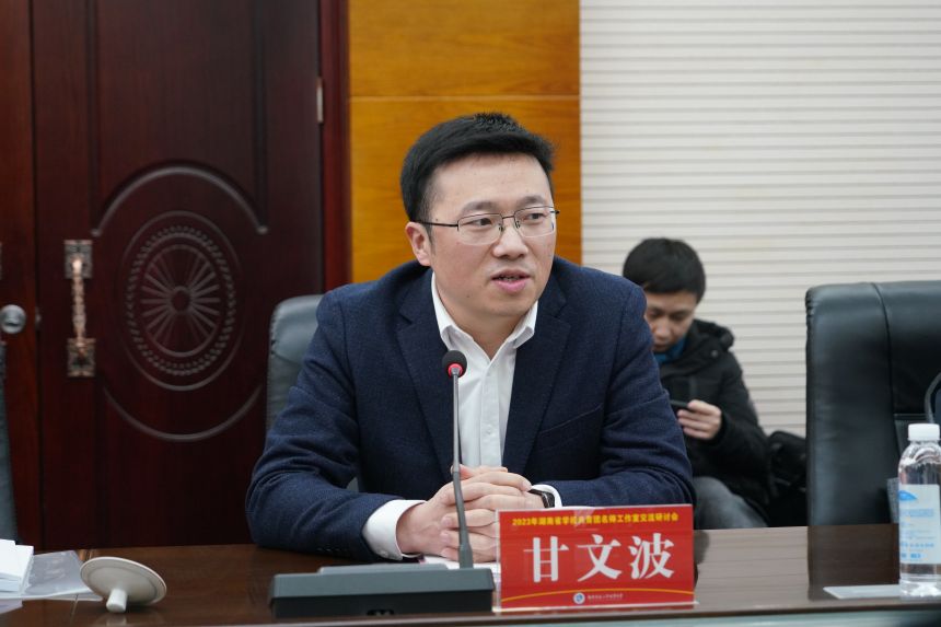 12月28日上午,湖南省学校共青团名师工作室交流研讨会在我校召开,来自全省各地的名师工作室首席名师代表参加研讨。共青团湖南省委副书记叶妙,省委教育工委宣传部部长、省教育厅思政处处长甘文波出席会议并讲话,共青团湖南省委学校部部长陈艳英,省直团工委副书记彭量,我校校长谢永红、副校长廖强等领导、嘉宾参加会议。