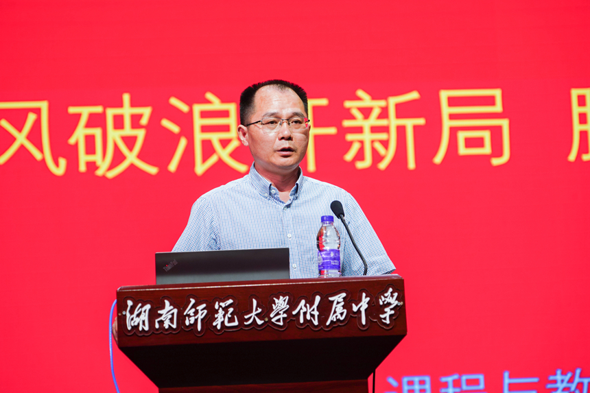课程与教学处主任黄宇鸿做了题为《乘风破浪开新局,脚踏实地抓质量》的半期教学工作报告。他首先对半期以来的教学常规工作作了全面点评,对半期来的工作成绩给予了充分肯定。他强调考试研究是本学期重点工作,各年级、各学科对考试研究、考试管理的要求非常重视,命题质量有所提升。同时,他以问题为导向,对半学期以来的教学工作进行了全面的反思,并对接下来的教学重要工作进行了全面部署。