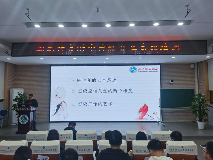 10月11日下午,学校第45期班主任沙龙活动在图书馆报告厅开展,德育与学生发展处主任吴卿、团委书记兼德育与学生发展处副主任李钊,年级组长及全体班主任参加了本次活动,活动由李钊主持。