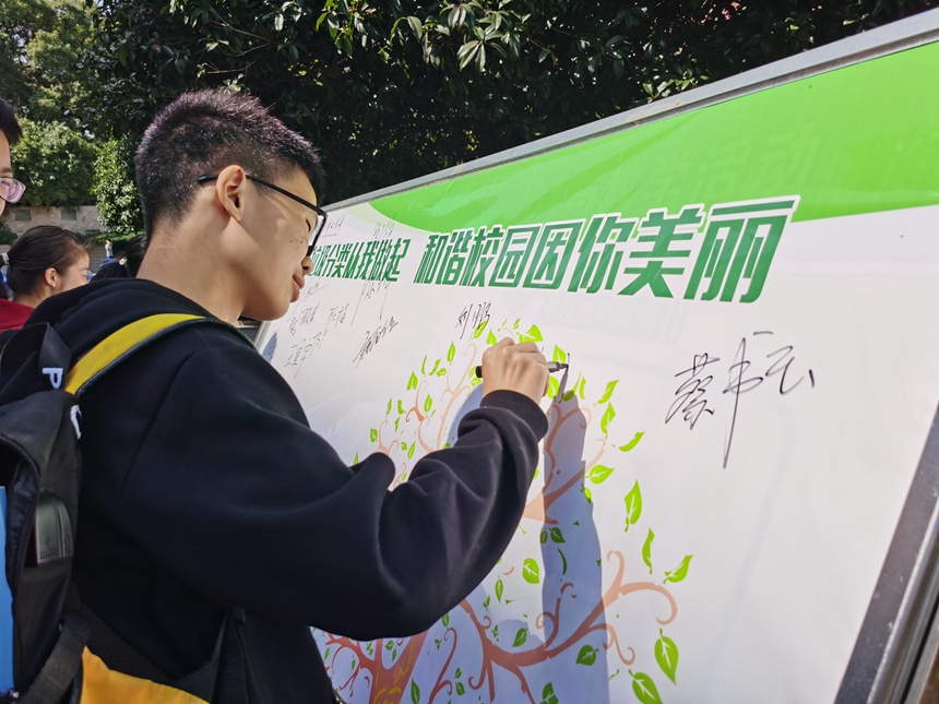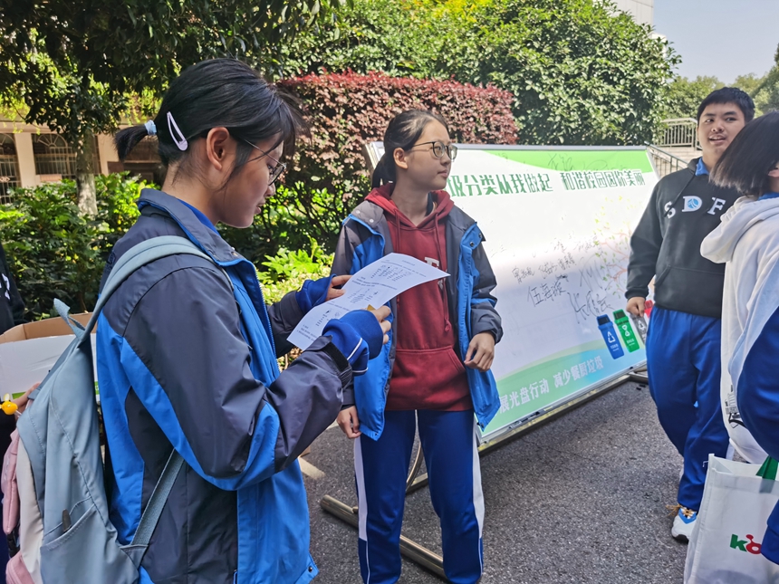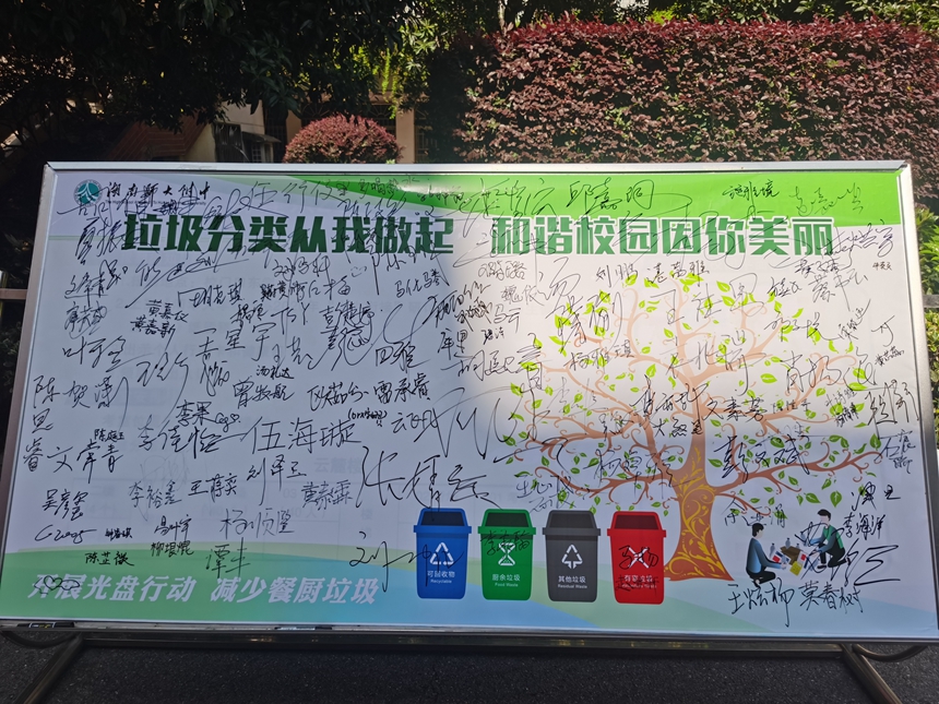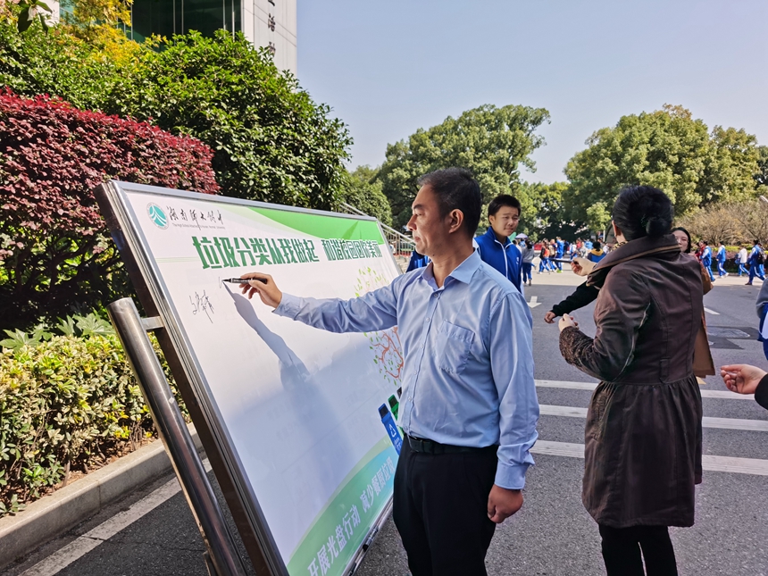 我校开展垃圾分类宣传和签名活动