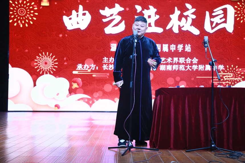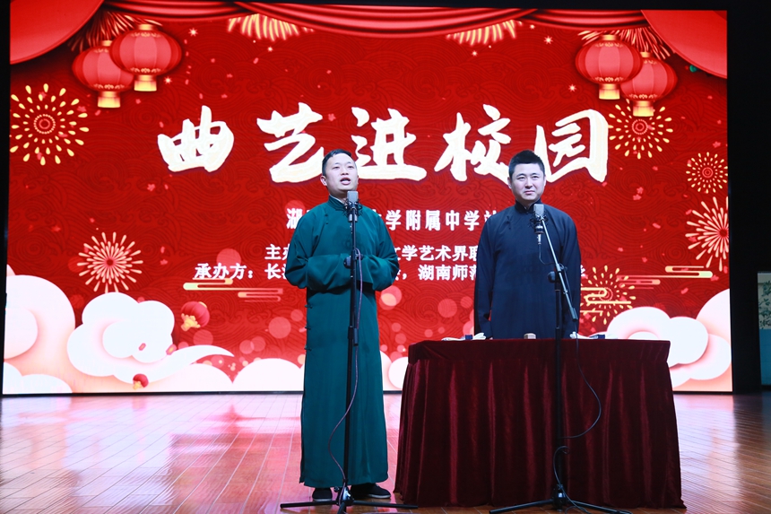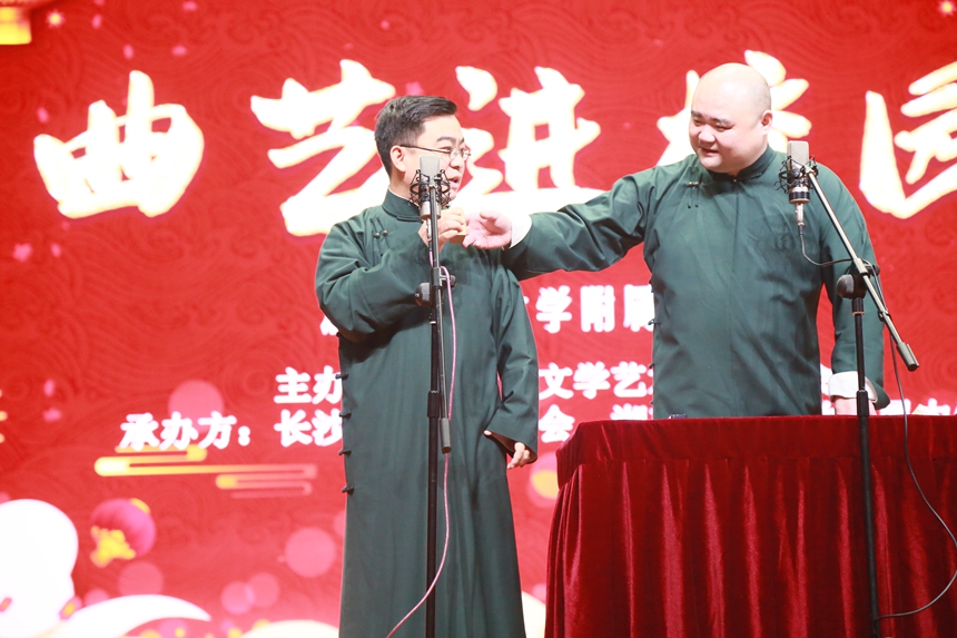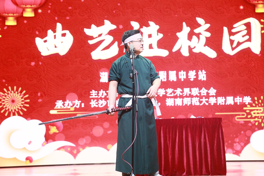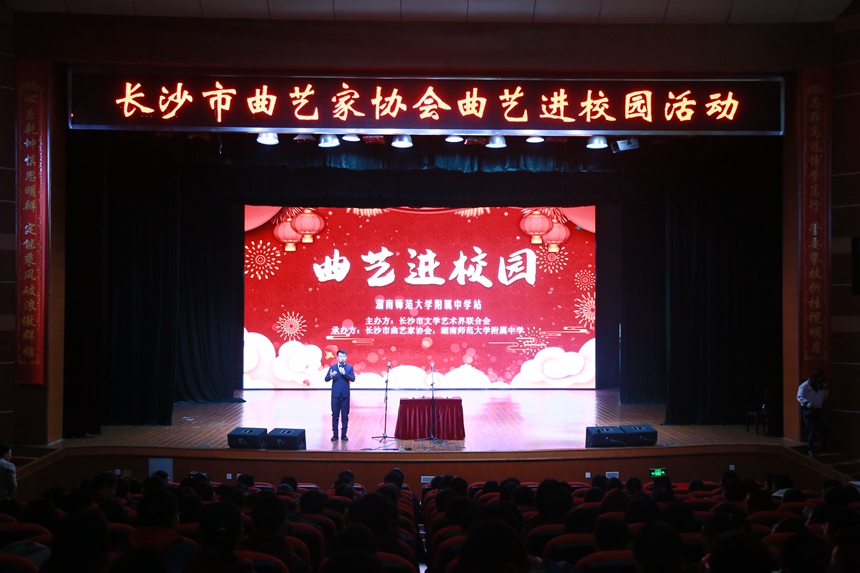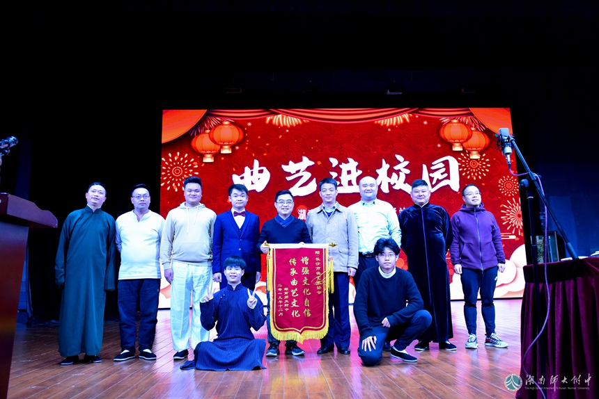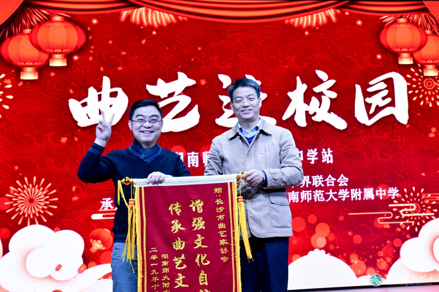 12月17日下午,我校第34届校园文化艺术节曲艺欣赏专场,在学生活动中心举行。此次活动得到长沙曲艺家协会的大力支持,苏建祥副校长向长沙曲艺家协会李丹副主席赠送了锦旗。德育与学生发展处副主任袁建光主持仪式。