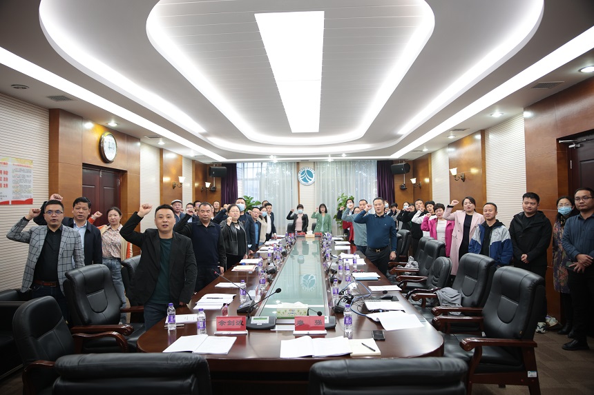 会议开始前,全体起立并奏唱国歌,全体与会人员精神饱满齐唱国歌。