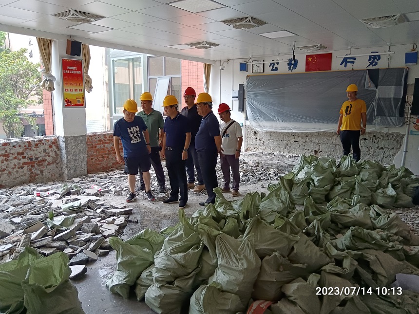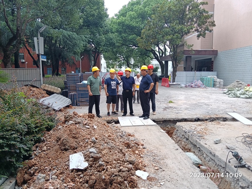 7月14日上午,校长谢永红带队检查学校暑期项目建设施工情况,副校长陈迪勋、党委委员、后勤服务和安全保卫中心主任李智敏陪同。