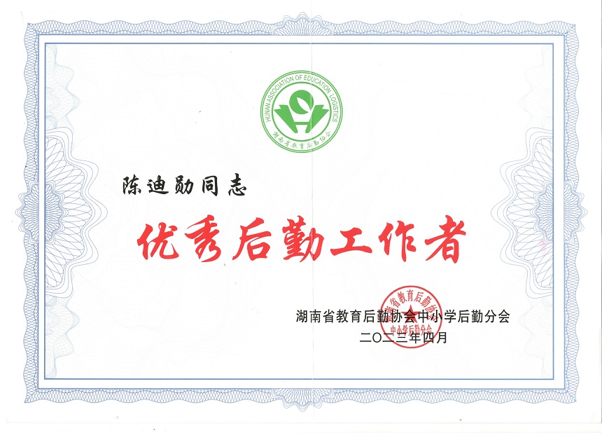 陈迪勋荣获湖南省教育后勤协会中小学后勤分会优秀后勤工作者