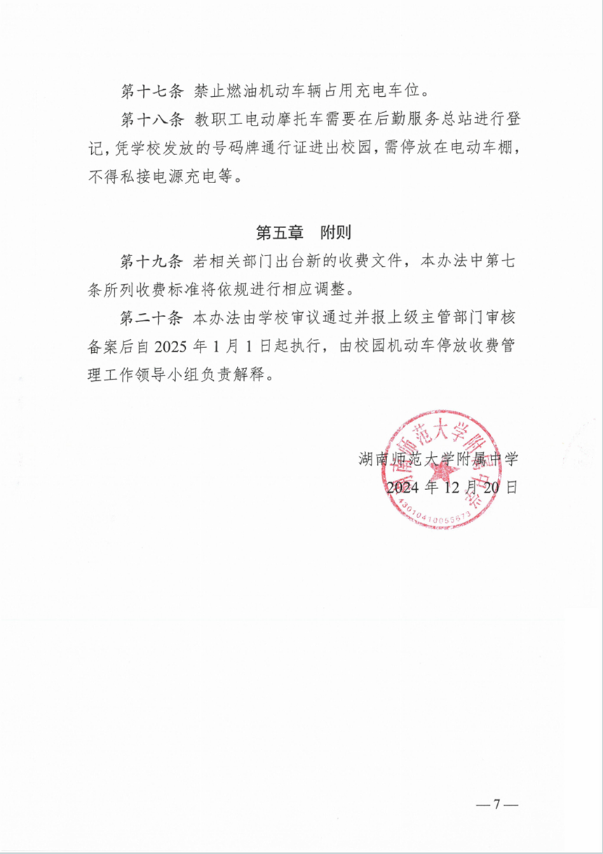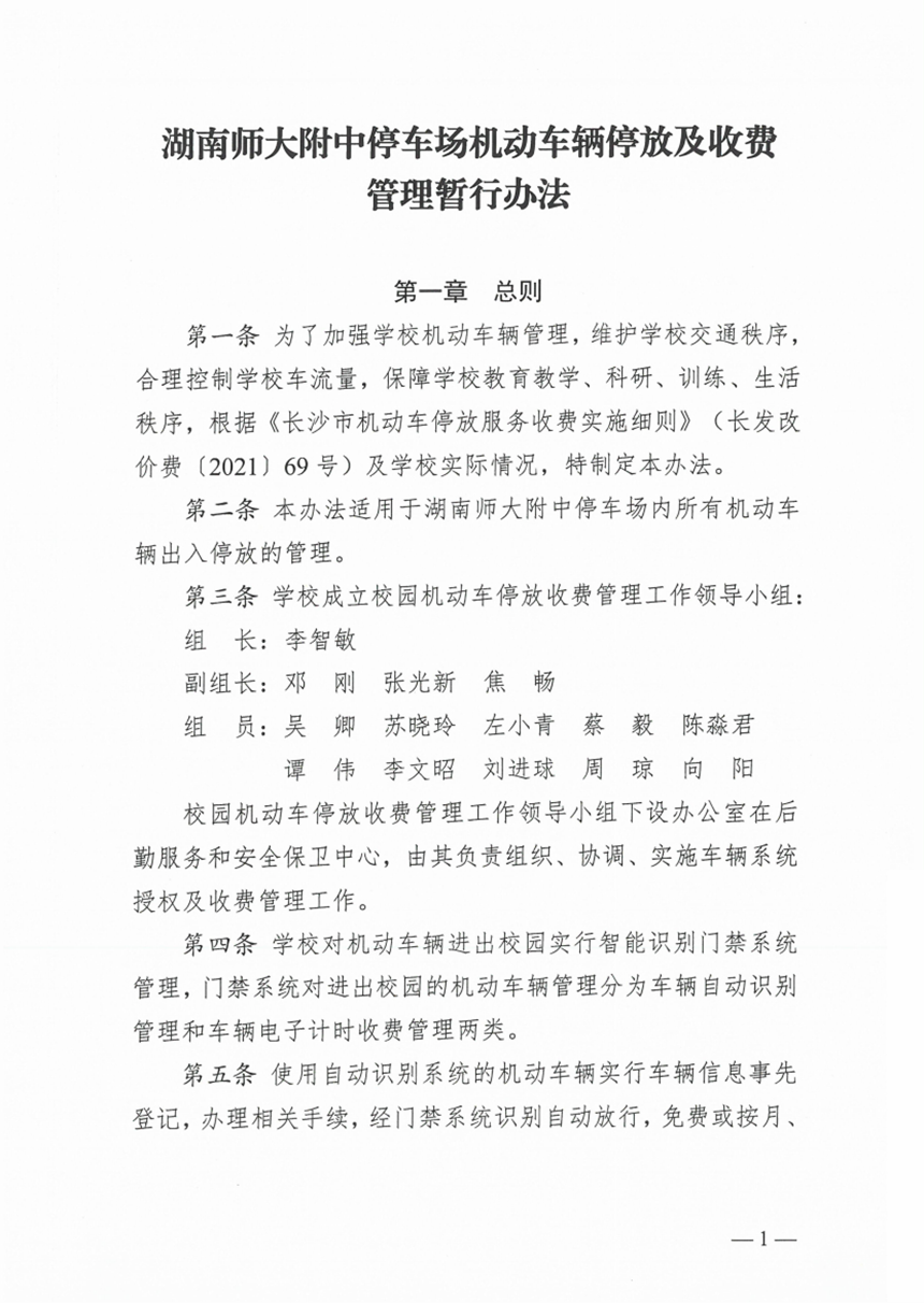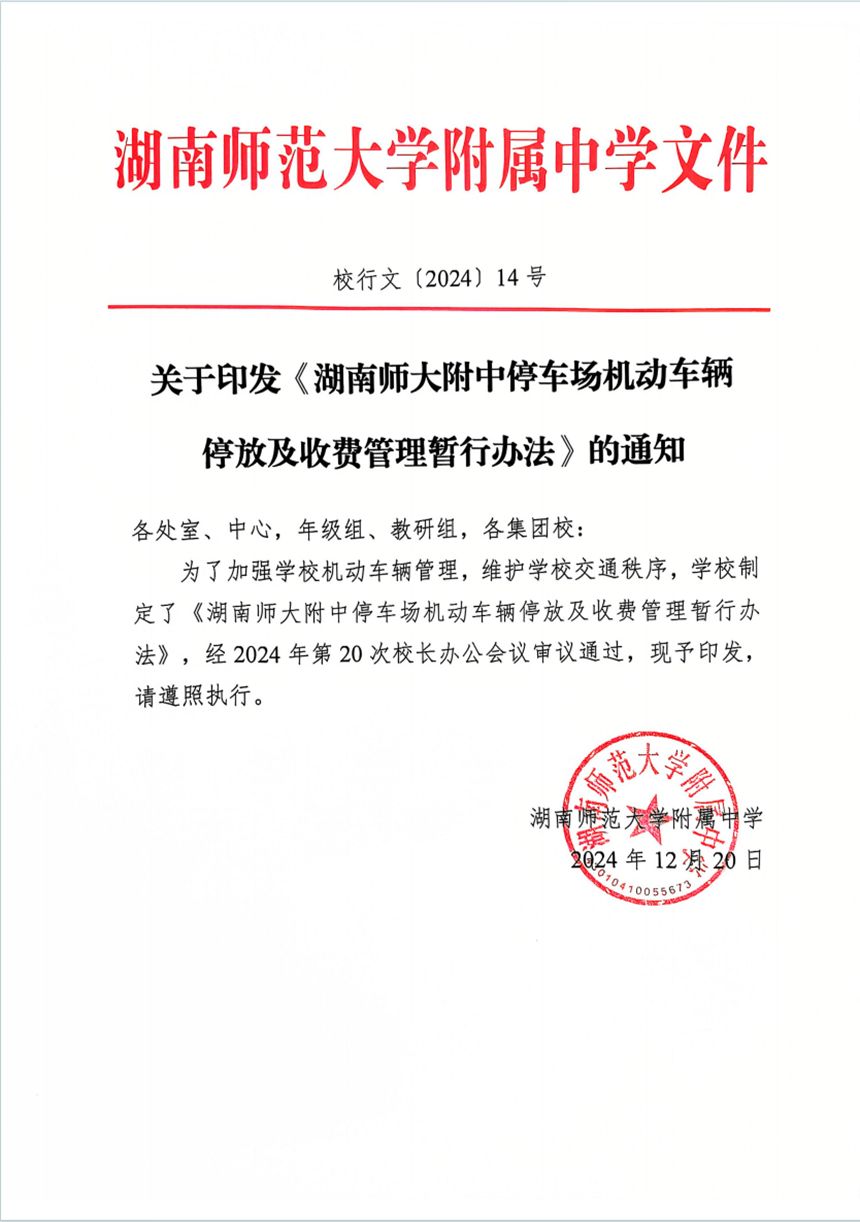 关于印发《湖南师大附中停车场机动车辆停放及收费管理暂行办法》的通知
