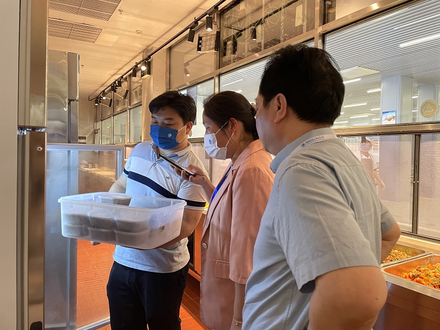 督查组通过现场查看、查阅档案、现场询问等形式,对学校新食堂、面包房、自助收货机等的环境卫生、设施设备配备、食材采购储存、食品加工制作、餐饮用具清洗消毒及食品留样情况进行了详细检查,并就需要注意和改进的地方,向食堂负责人进行了提醒反馈,要求其及时整改到位。