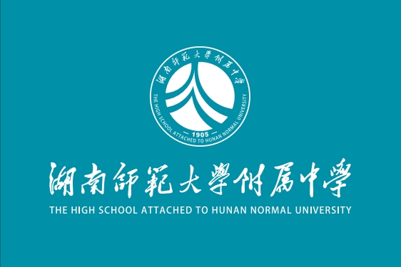 “人”字将圆形标志分为三块,取“三湘”之意;组成“人”字的四条白线又有“四水”的意象,交汇于一处,象征来自三湘四水的莘莘学子汇聚附中。