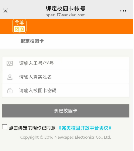 3、首次进入需要绑定校园卡。“工号/学号”为学生身份证号,“校园卡密码”默认为身份证后6位(身份证后面的字母,用“0”替代),如果密码已修改的则输入自己修改后的密码。