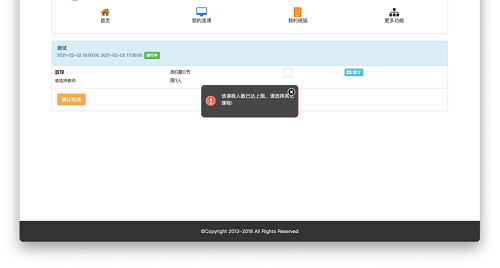 1.在选课过程中,如果所选课程超过该课程设置的上限人数会弹出如下提示框: