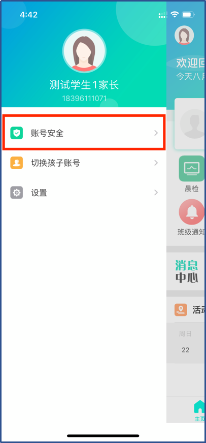 输入家长账号登录智行校园APP家长端。默认账号、密码均为家长手机号。登录成功后,请及时修改密码,修改密码方式如下。