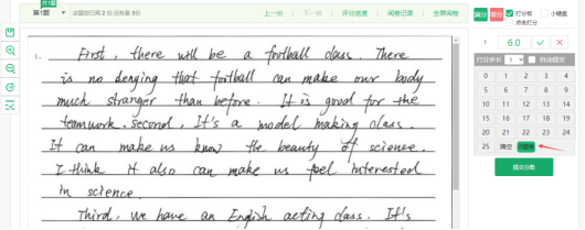 5、打分:点击右侧的打分区域,直接在打分板上点击对应的分数后,在点击“提交分数”即可;