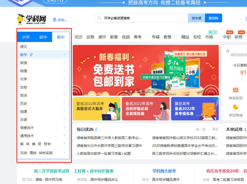 1.登录成功后,选择相应的学科;