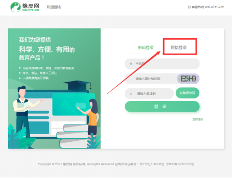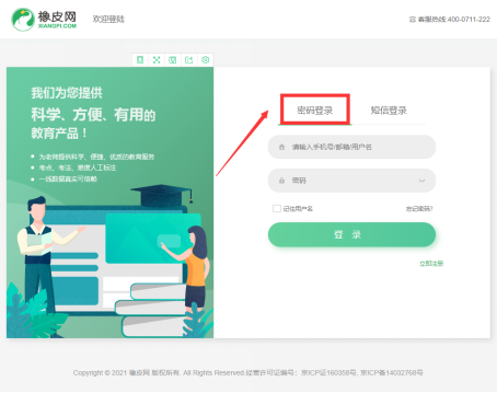 打开橡皮网主页,点击“登录”按钮,输入账号、密码即可登录橡皮网。学校账号、个人账号均可登录。