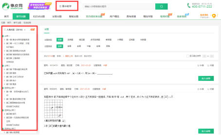 橡皮网提供章节出题、知识点出题、智能出题、双向细目表出题、试卷出题、每周好题等组卷形式。登录后,教师选择命题学科,然后点击相应的组卷形式(也可通过不用的组卷形式组合),找到适合的试题,加入试卷。