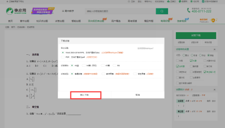 组卷完成将鼠标放到“试题篮”上,会弹出“我的试卷”,点击“预览试卷”,预览确定后,点击“试卷下载”即可完成组卷。